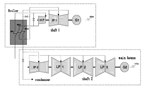 including HP&IP1 casing is located near the boiler headers, the second